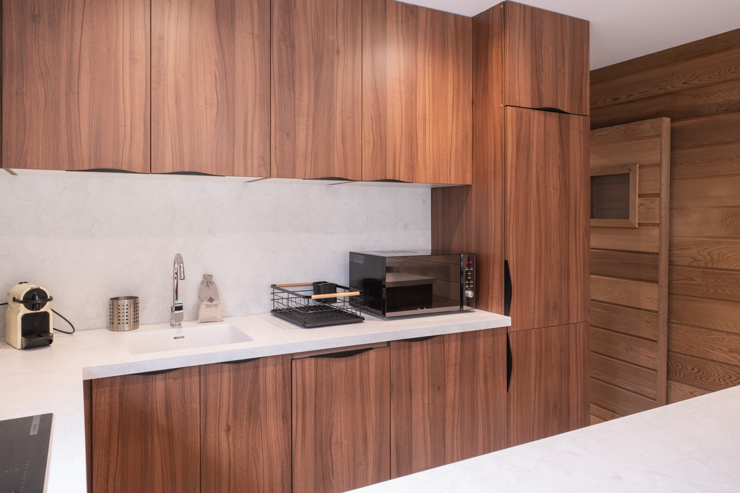 - Un séjour exposé sud avec une cuisine américaine neuve et entièrement équipée (Nespresso, machine à café à filtre; bouilloire, grille-pain, presse-agrumes, lave-linge)