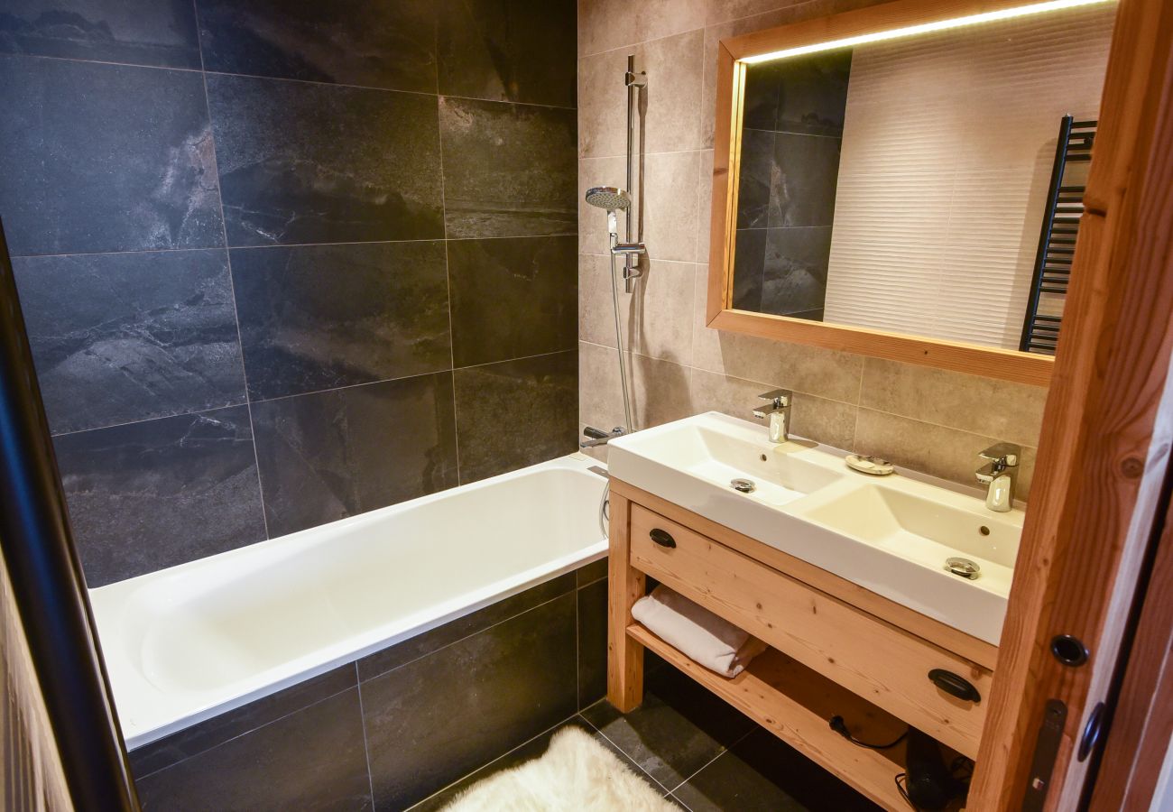 Il bénéficie d'une chambre double avec sa salle d'eau attenante et accès au balcon exposé ouest, ainsi qu'un coin montagne fermé avec deux lits simples. De plus, vous bénéficierez d'une salle de bain et toilettes séparées.