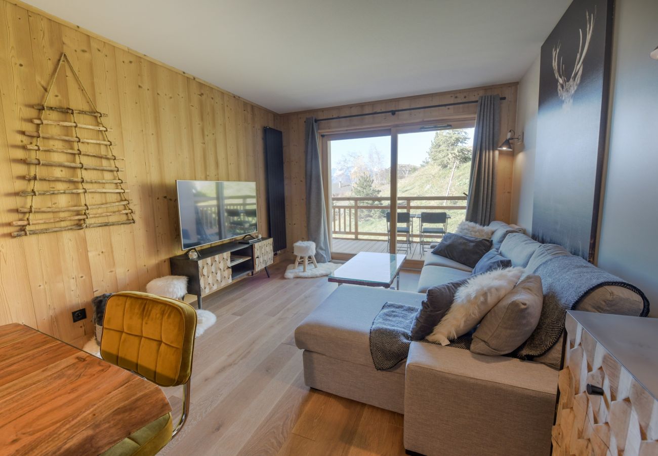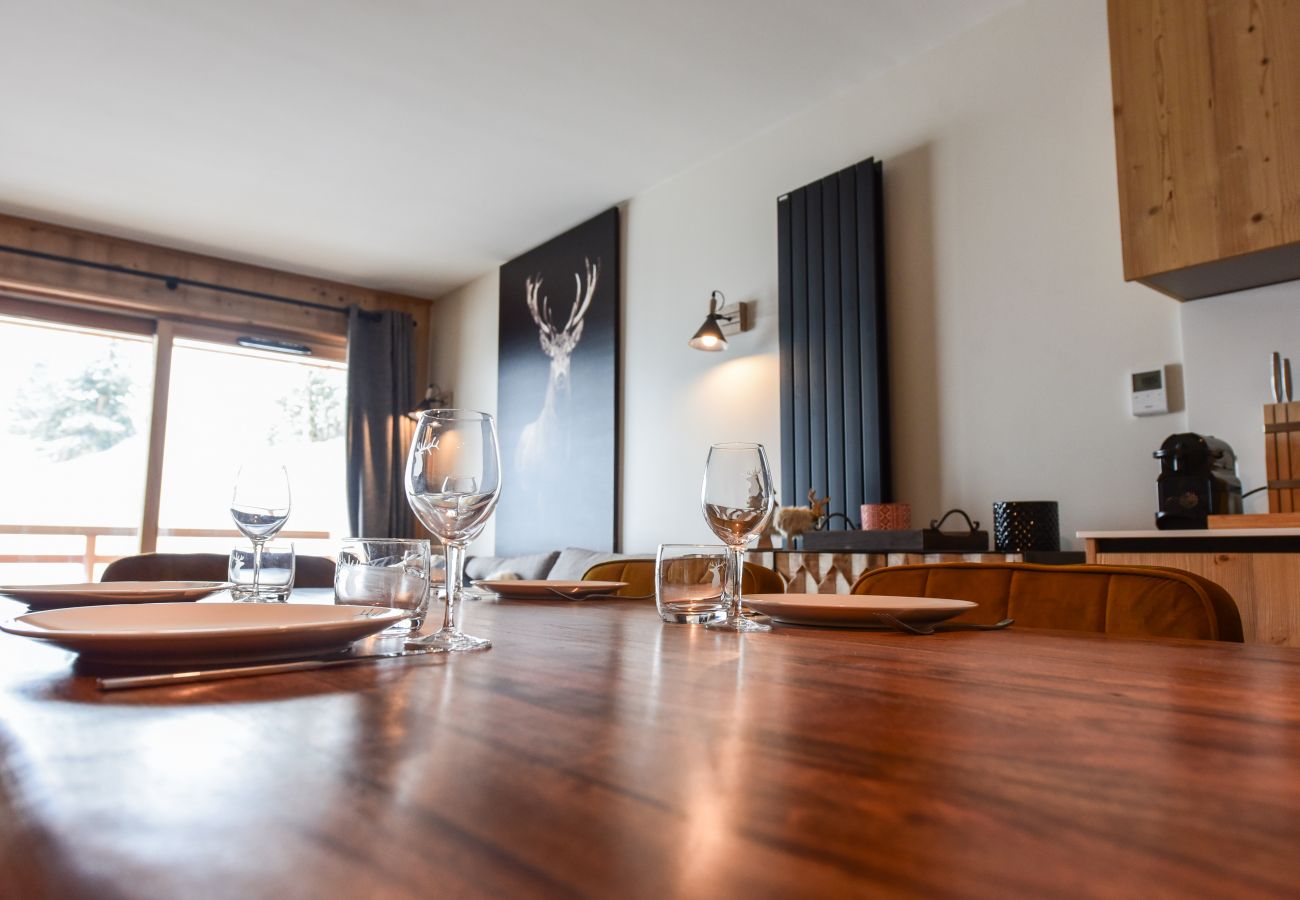 Sa cuisine, ouverte sur le séjour, est totalement équipée (grille-pain, bouilloire, Nespresso, cafetière à filtre; presse-agrumes, appareils fondue et raclette) et le salon sont idéals pour partager des moments en famille. Un balcon équipé de mobilier extérieur vous permet de profiter des belles après-midi ensoleillées.