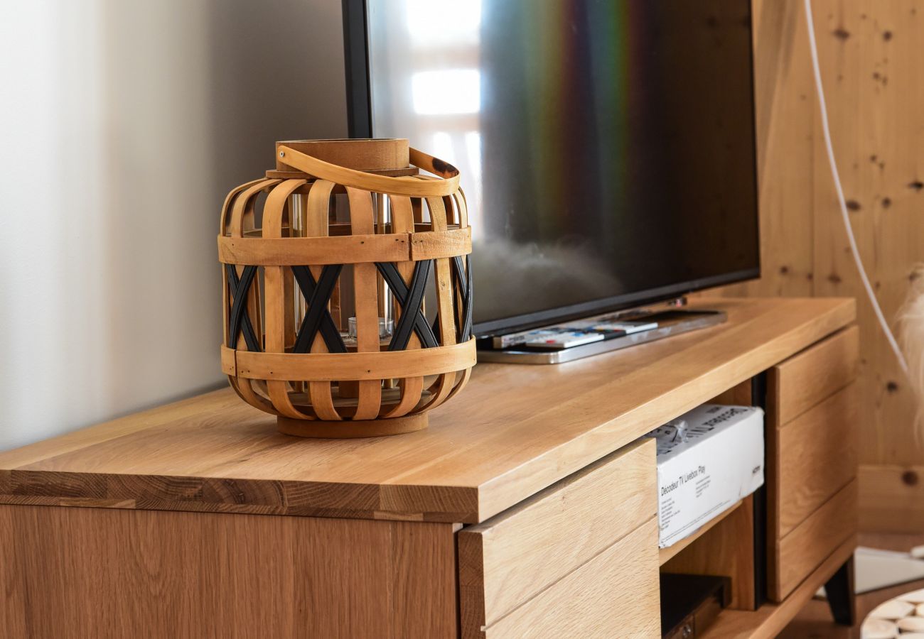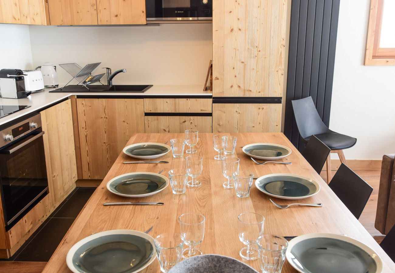 Sa cuisine, ouverte sur le séjour, est totalement équipée (grille-pain, bouilloire, Nespresso, appareil à raclette et fondue) et le salon aménagé pour passer de belles vacances.