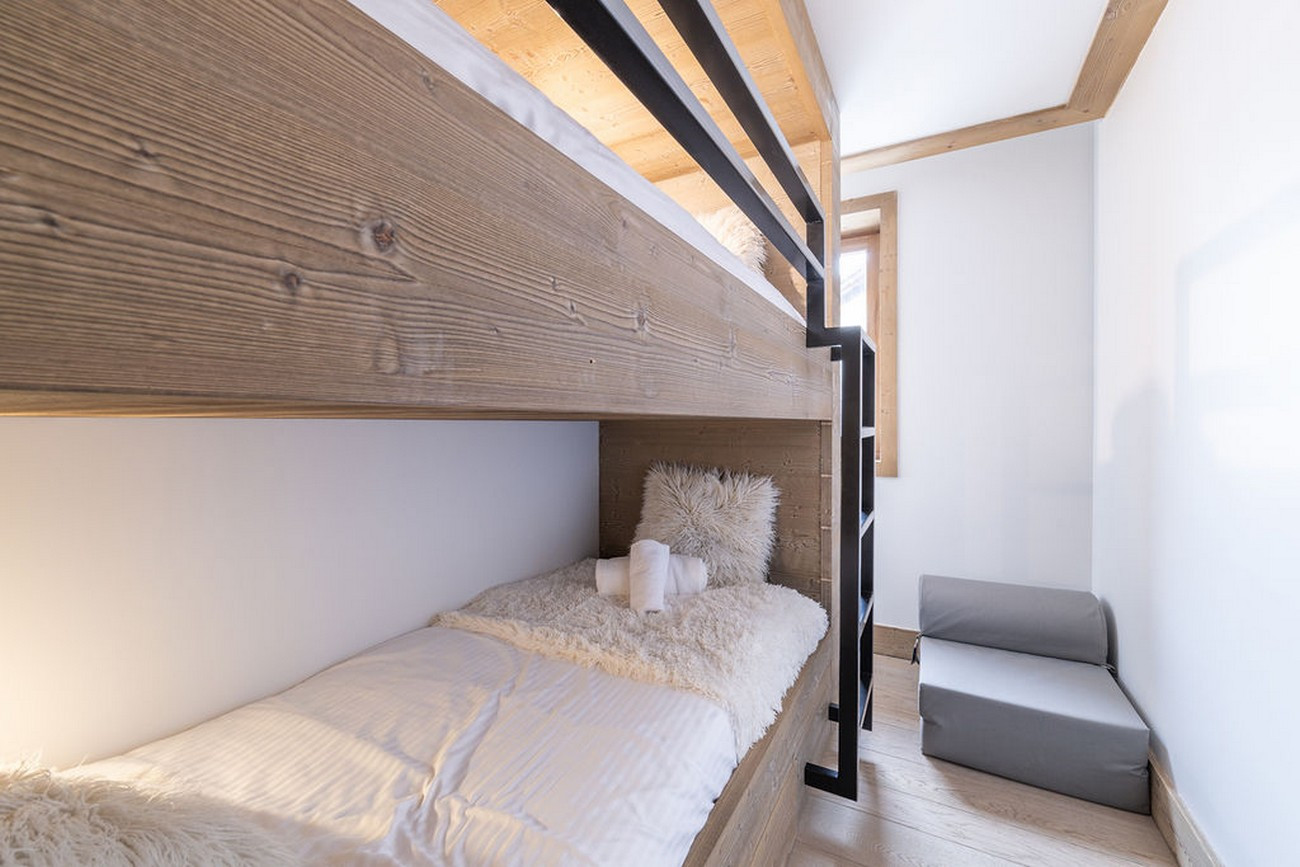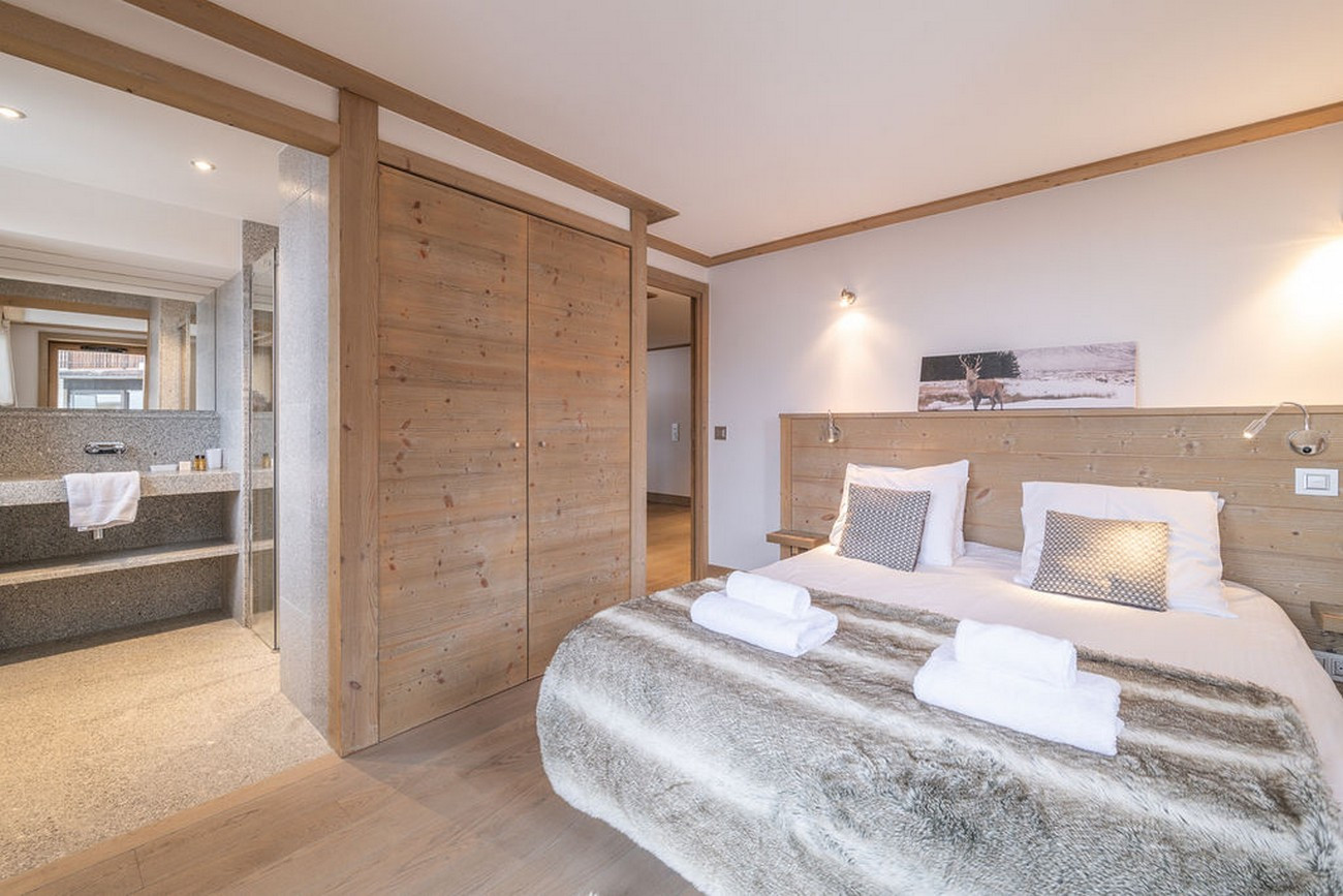 Côté nuit, 3 chambres doubles, dont une magnifique suite parentale avec sa salle de bain en pierre et d'un coin montagne avec 1 lit superposé.