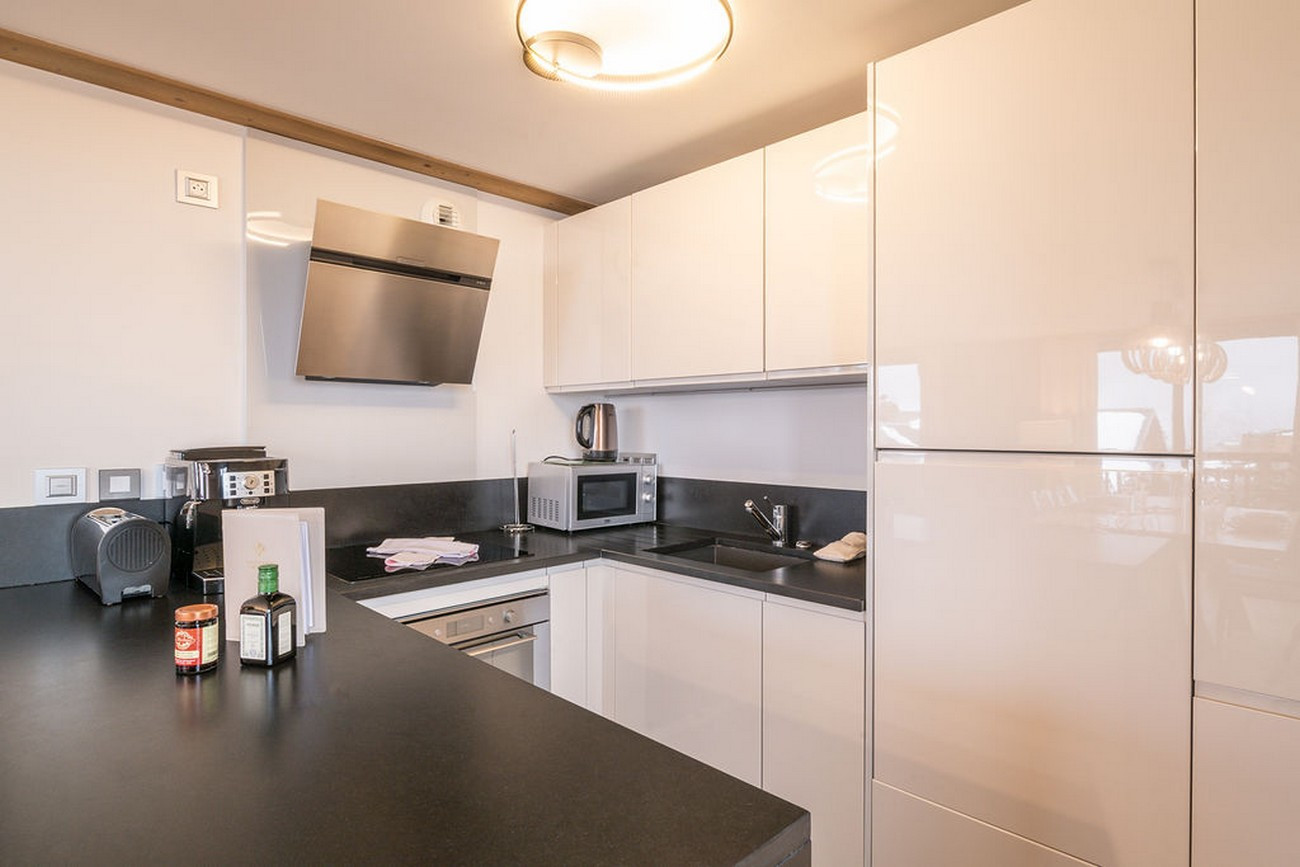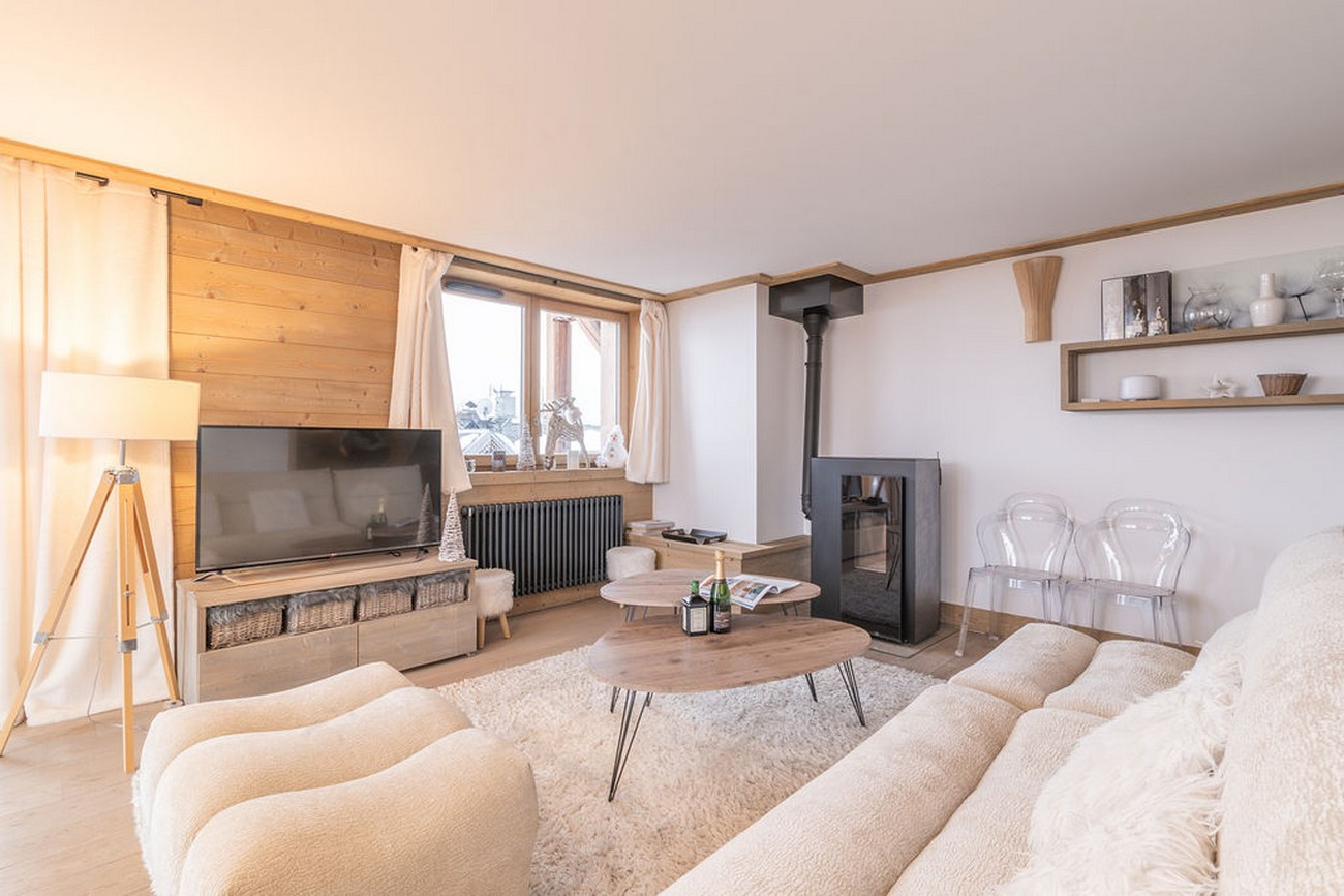 L’appartement se compose d’un grand séjour lumineux avec cuisine ouverte entièrement équipée (cave à vin, bouilloire, presse-agrumes, Machine à café à grains Delonghi, appareils à fondue et raclettes). Il dispose d'un poêle à granules pour réchauffer vos soirées hivernales.