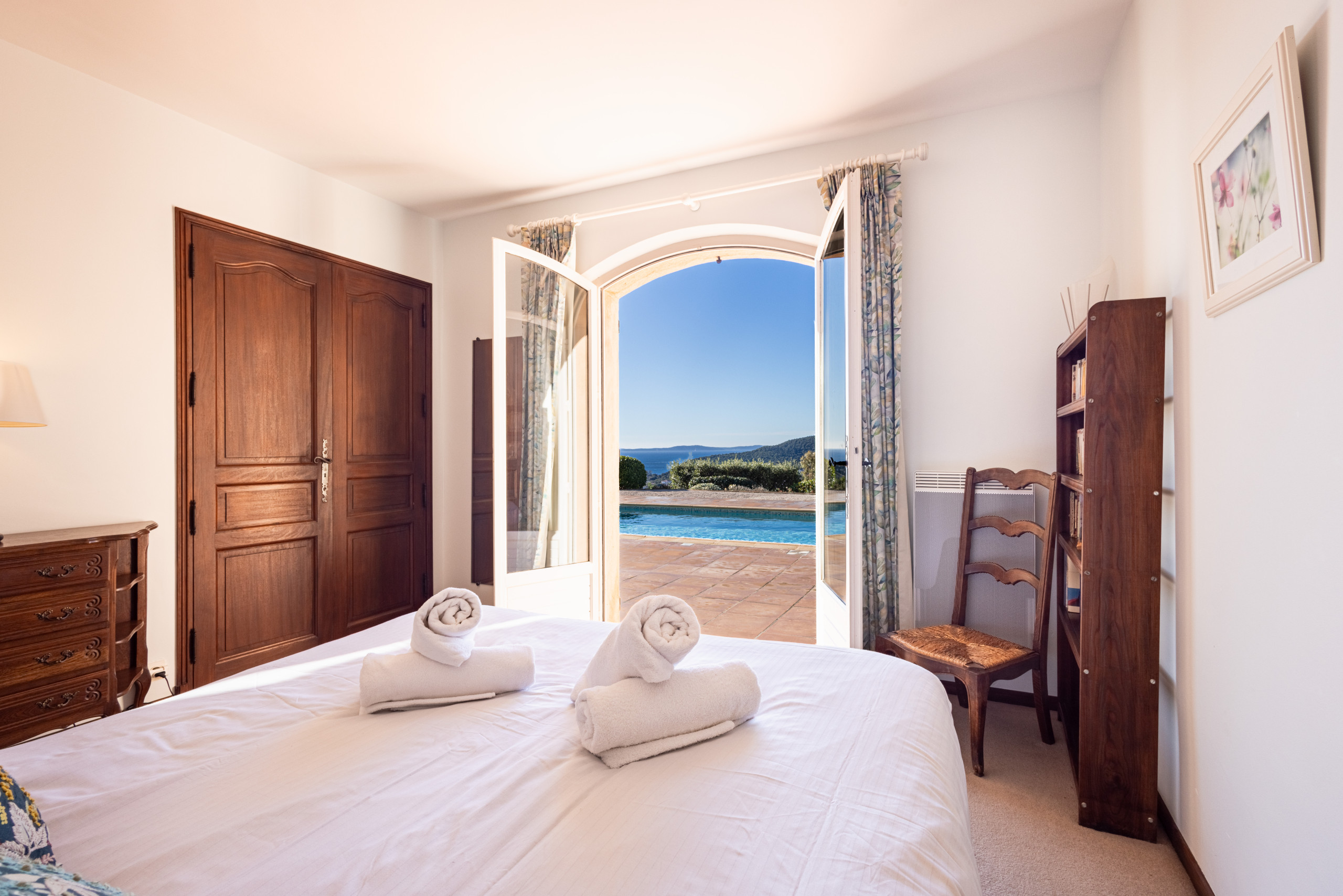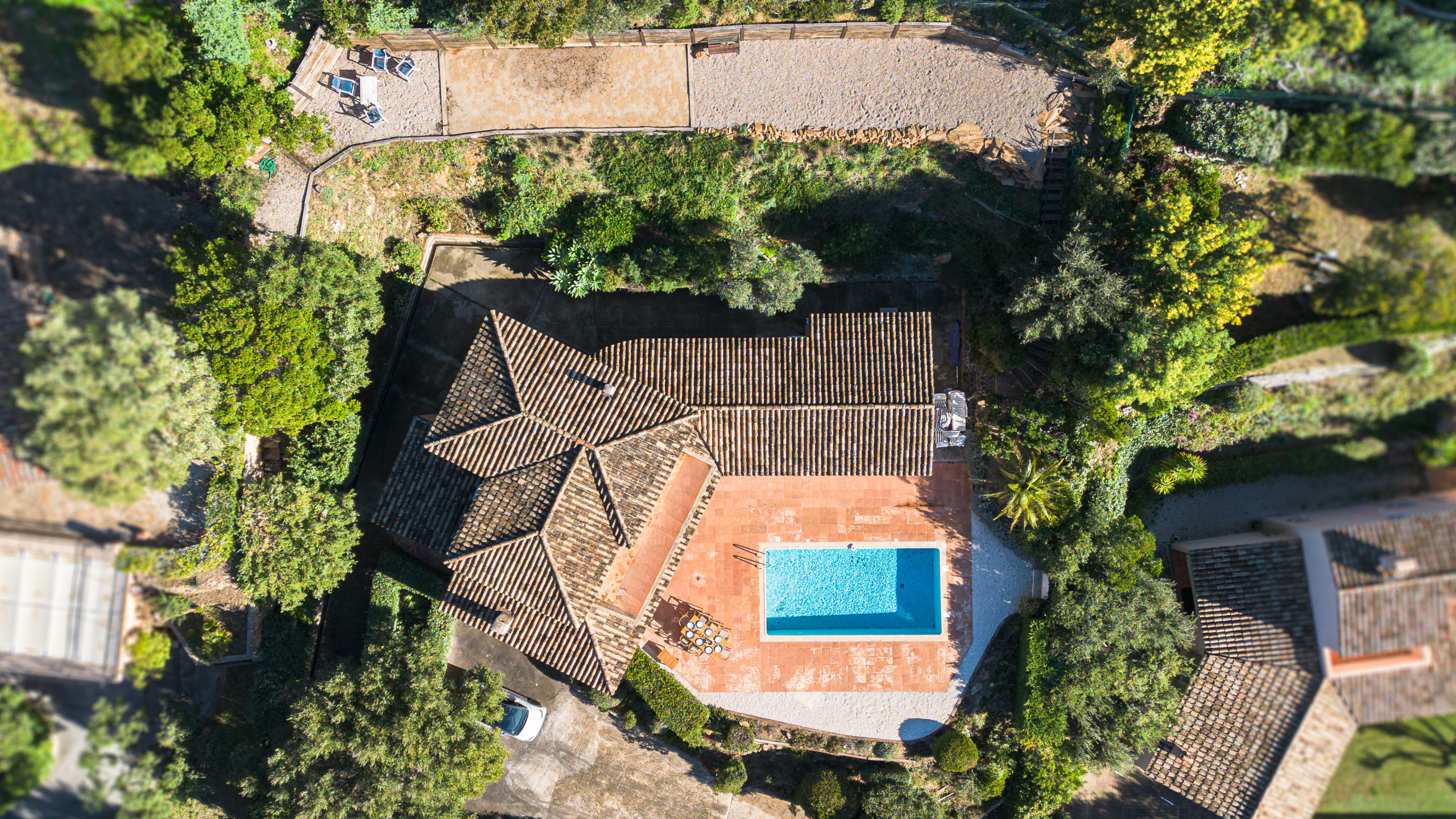 À l’extérieur, la villa dévoile un superbe espace de vie à ciel ouvert : une piscine avec vue mer, idéale pour se rafraîchir tout en admirant le panorama, ainsi qu’un terrain de pétanque privatif, parfait pour partager des moments conviviaux et typiquement provençaux en fin de journée. Chaque instant passé à l’extérieur devient une invitation à la détente, entre soleil, horizon bleu et douceur de vivre méditerranéenne.