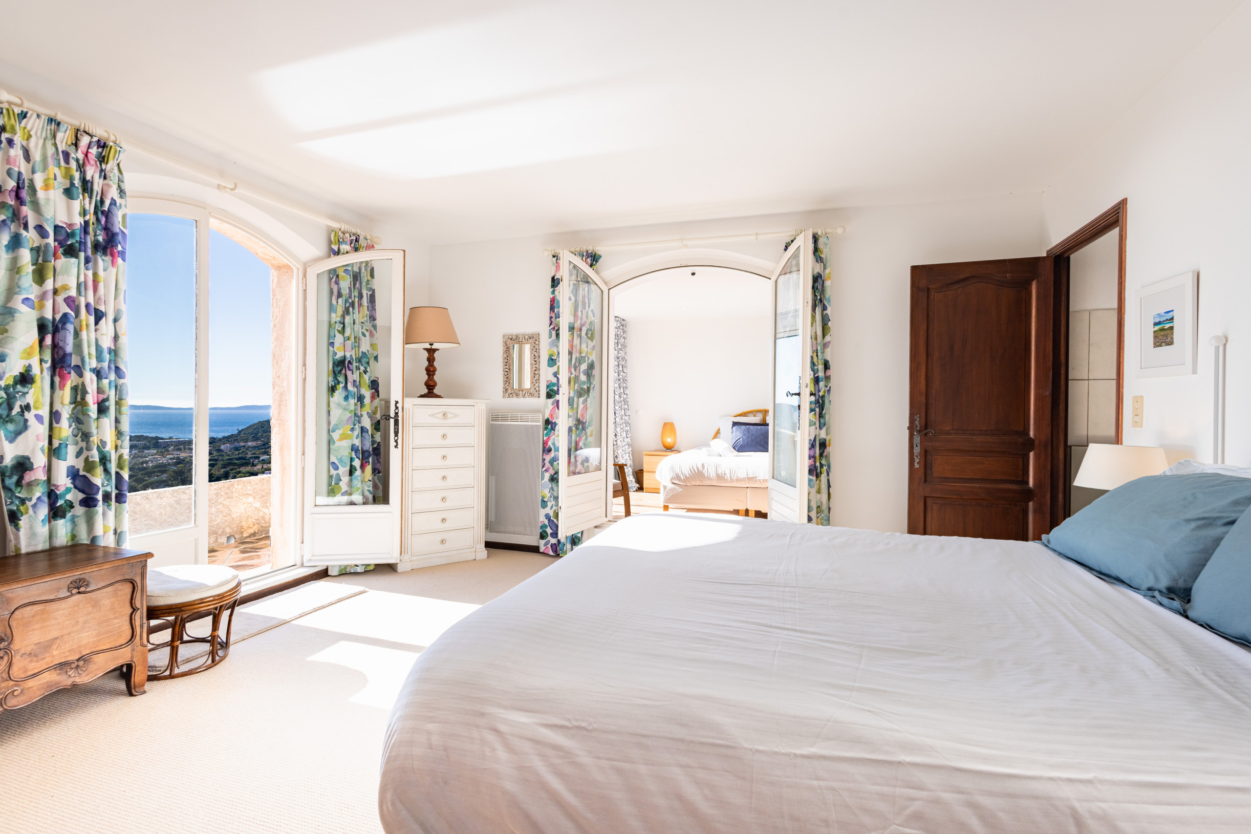 Véritable atout de la villa, la suite parentale se distingue par ses volumes généreux et sa configuration rare. Elle dispose de deux lits king size, permettant d’accueillir jusqu’à 4 personnes, ainsi que d’une spacieuse salle de bains avec douche, baignoire et toilettes. Un espace idéal pour des parents voyageant avec leurs enfants, offrant à la fois indépendance, confort et convivialité, dans une atmosphère apaisante.