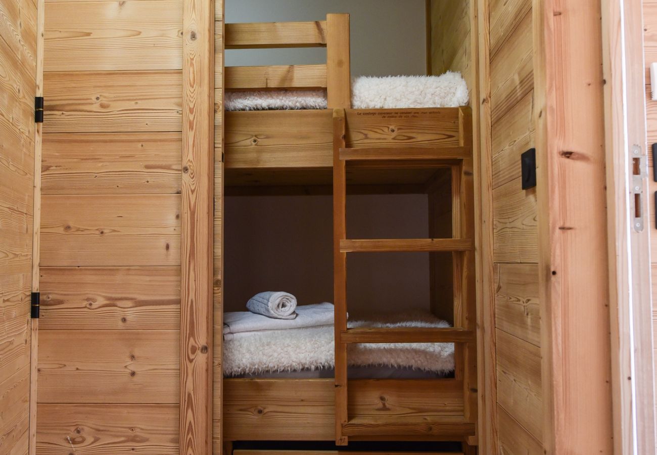 Ideal for your holidays, the apartment consists of a beautiful living room decorated with care, a fully equipped kitchen as well as 1 double bedrooms and 2 mountain corners with bunk beds.