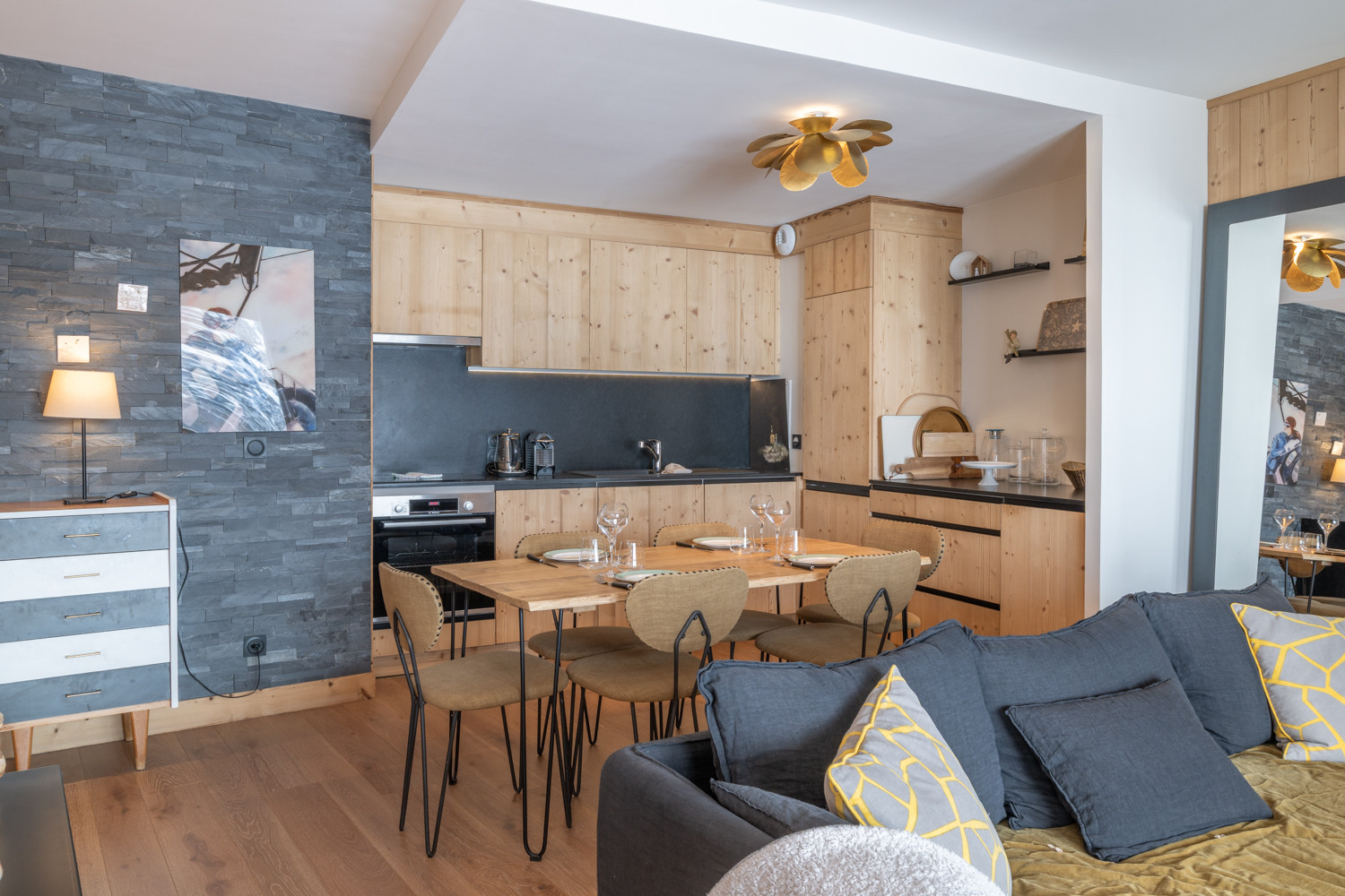You will enjoy a spacious, bright living room facing west, offering beautiful views of Le Signal, as well as a fully equipped open-plan kitchen (Nespresso coffee machine, toaster, kettle, fondue and raclette sets).