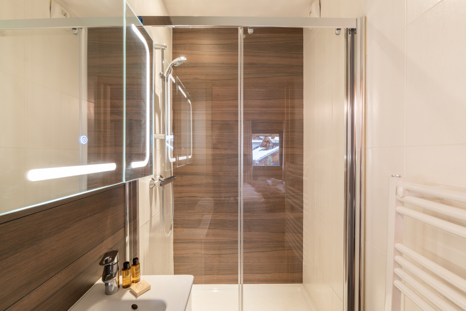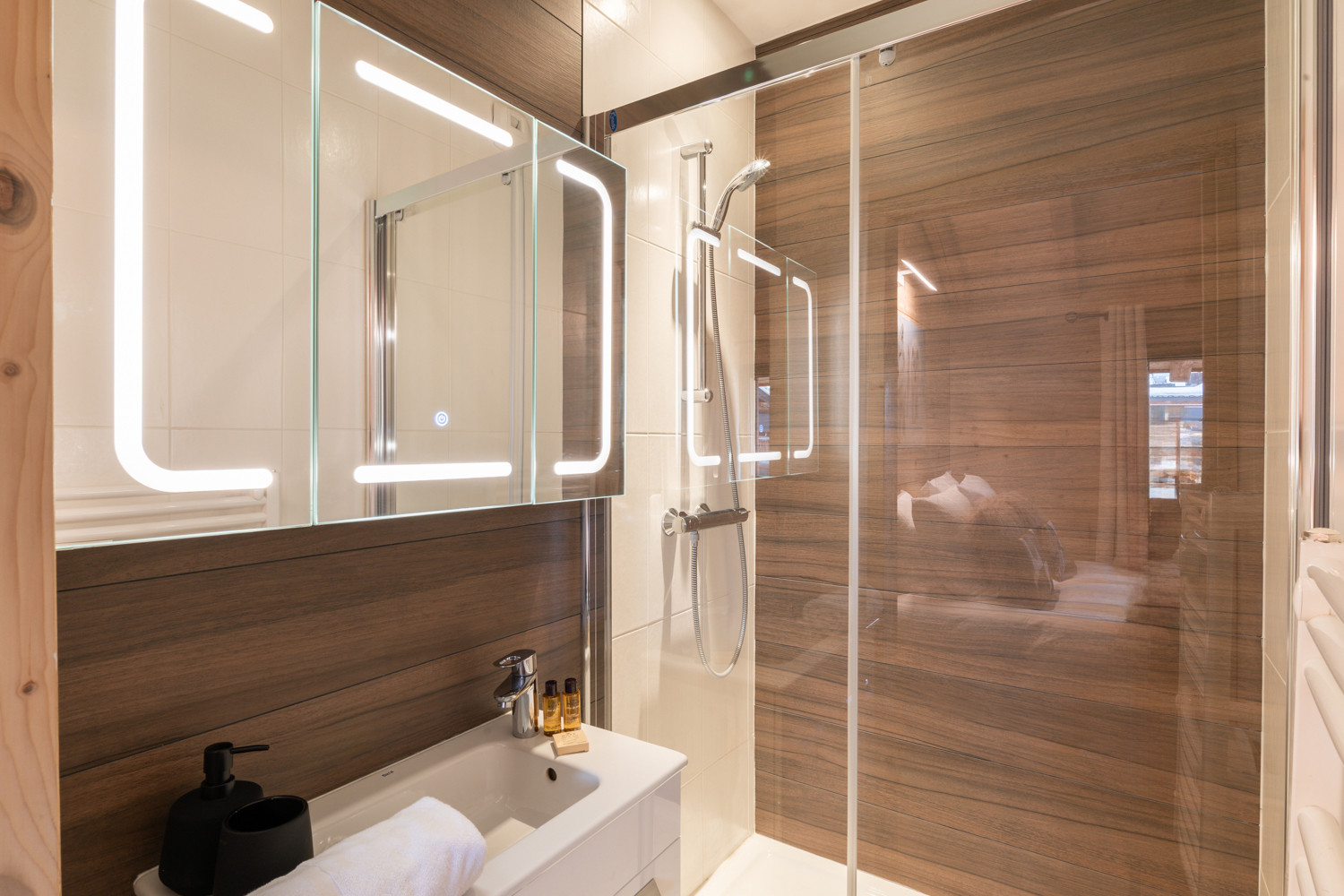 The apartment also includes a private garage within the residence, with a ski locker located inside. You will also have an outdoor parking space.