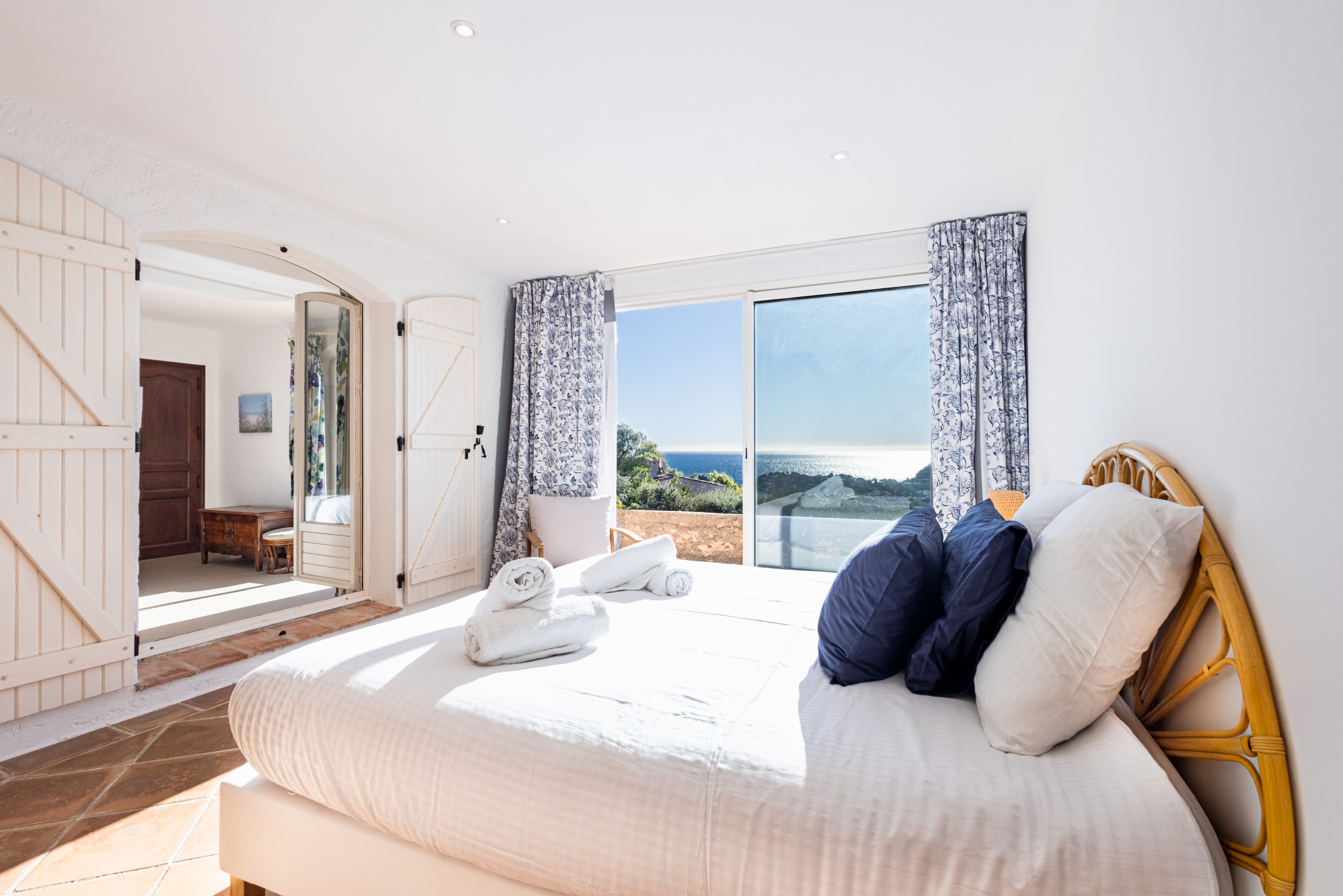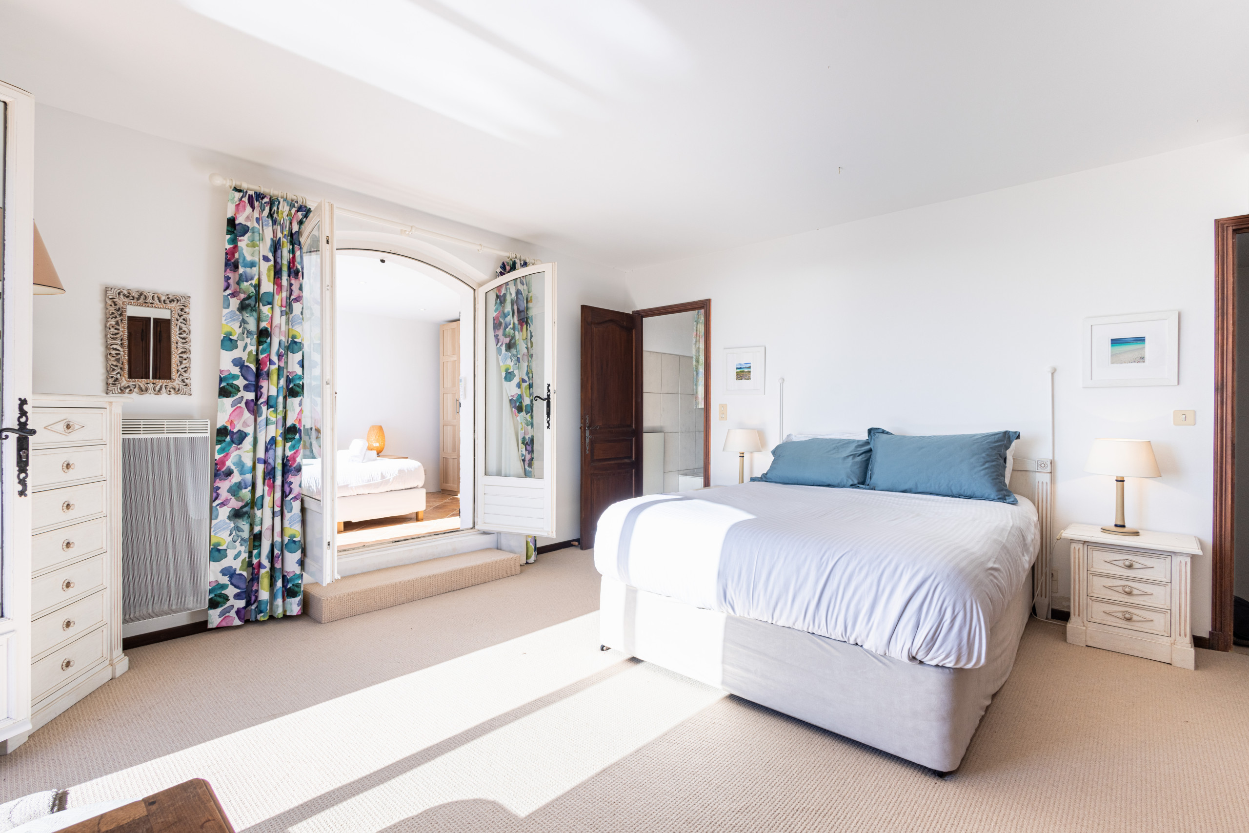 A true asset of the villa, the master suite stands out for its generous volumes and rare configuration. It features two king-size beds, accommodating up to 4 people, as well as a spacious bathroom with shower, bathtub and toilet. An ideal space for parents travelling with their children, offering both independence, comfort and conviviality, in a soothing atmosphere.