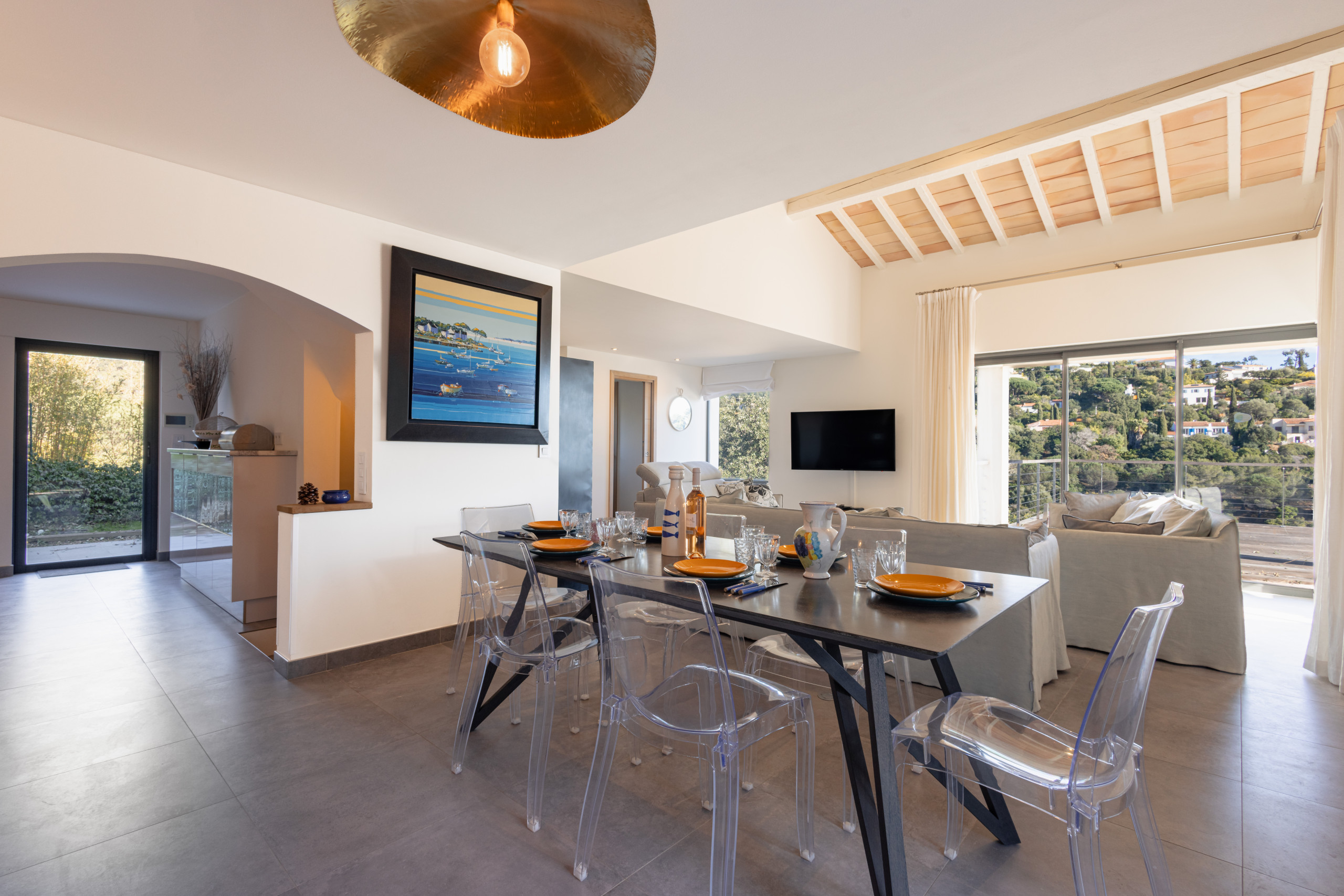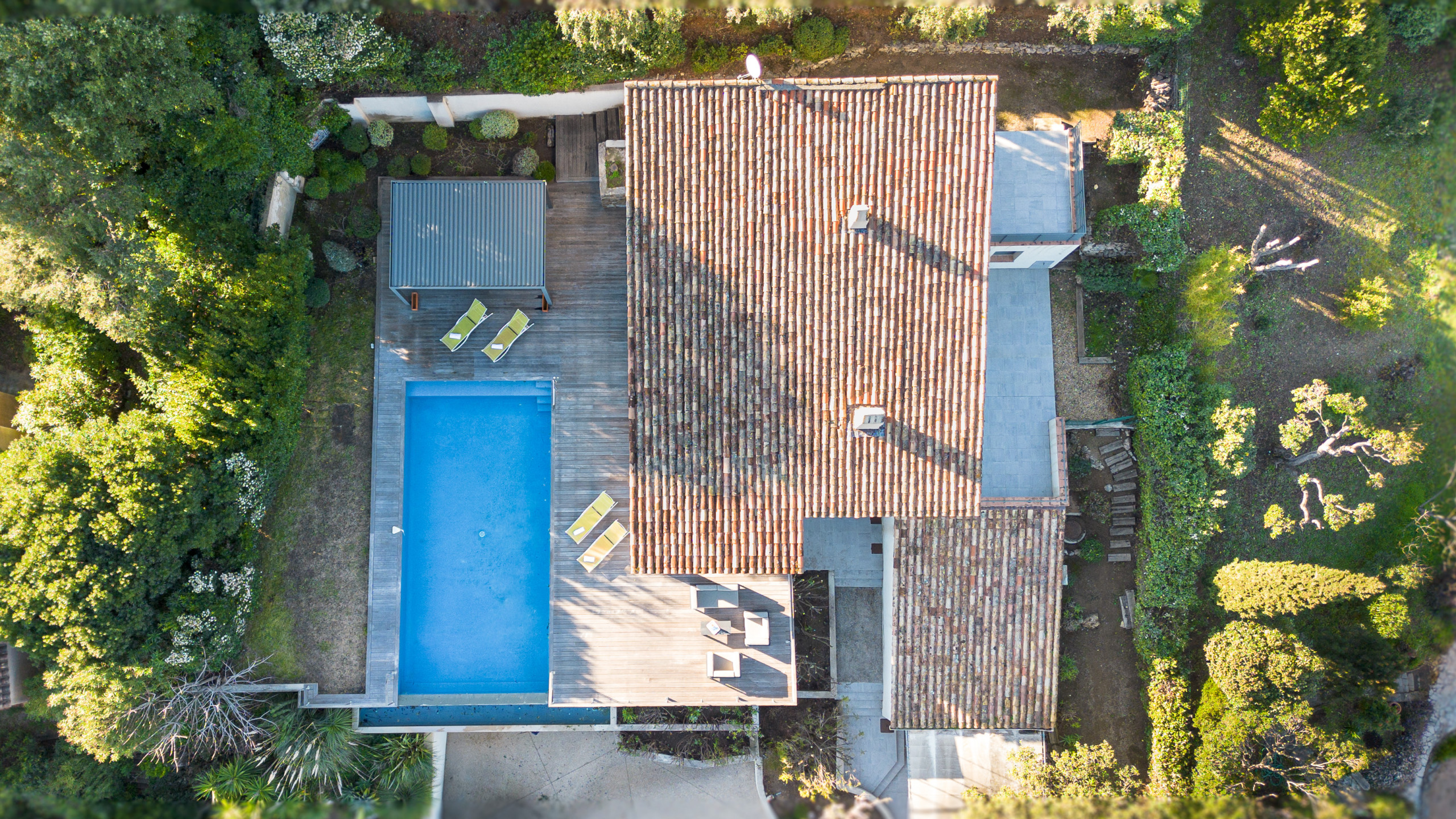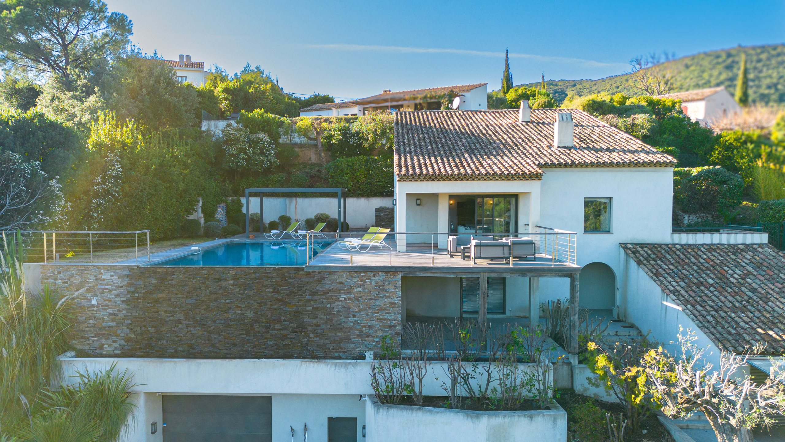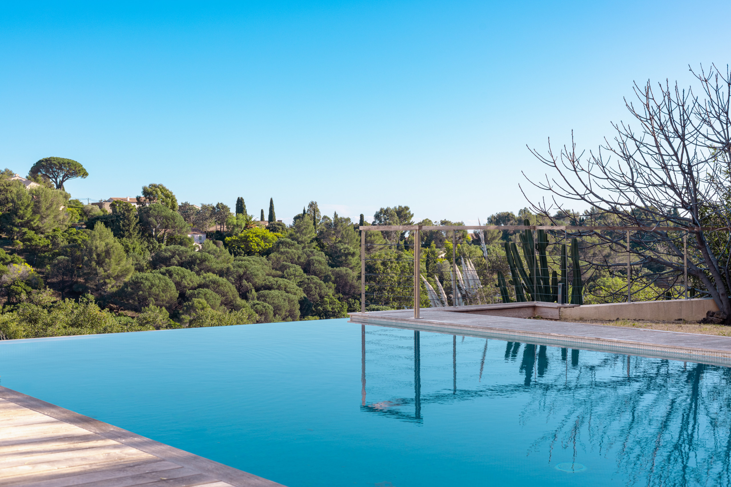 Outside, let yourself be seduced by a beautiful sunny terrace, a true open-air living space, hosting an infinity pool. An ideal setting to relax, share convivial moments and fully enjoy the Mediterranean art of living, under the sun of the French Riviera.