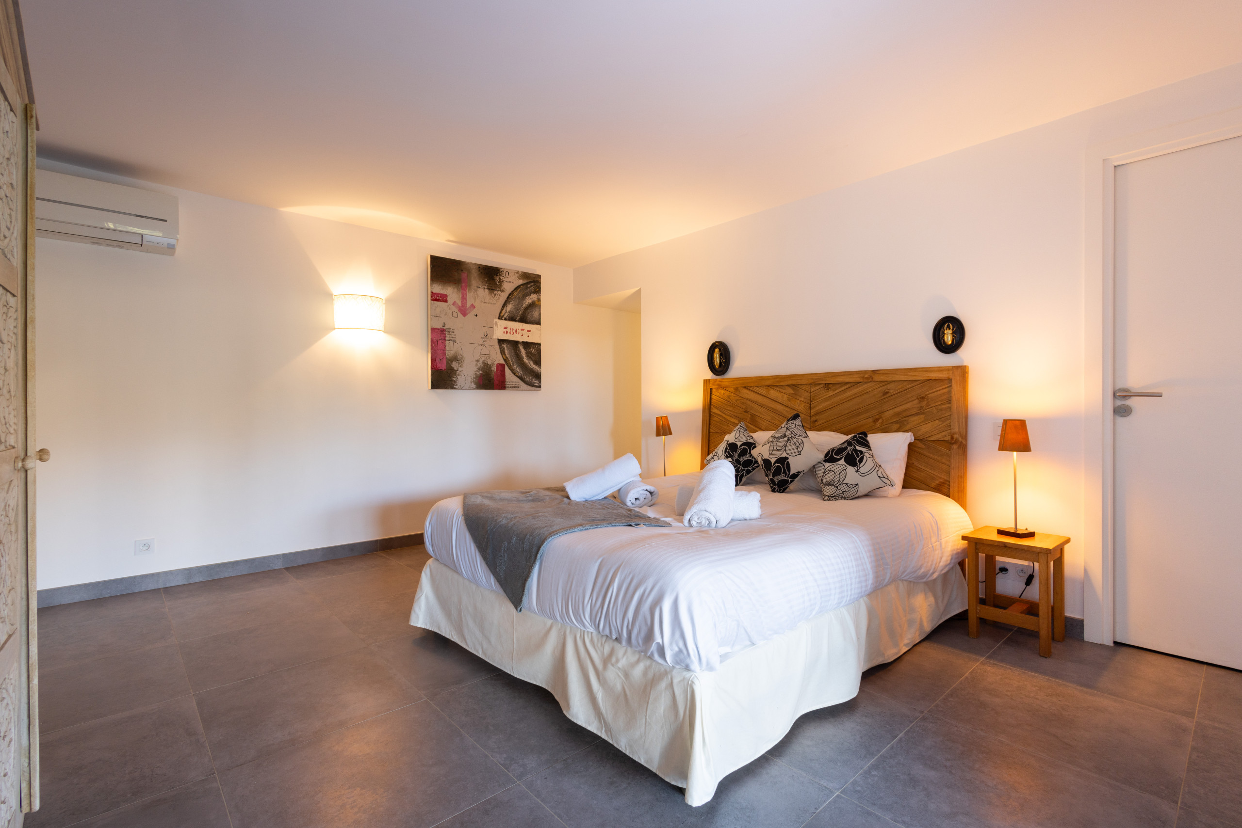 Designed to offer optimal comfort, the villa can accommodate up to 6 people. It consists of three elegant bedrooms, each with its private bathroom with toilets, ensuring well-being and serenity for all occupants.